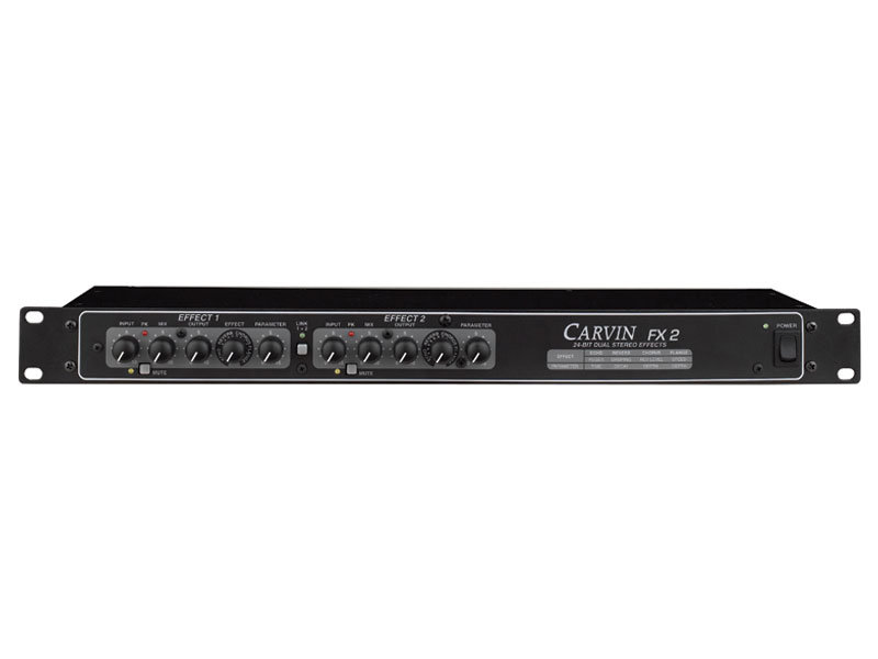 CARVIN FX2 - 24-Битный Двойной Процессор Стерео Эффектов - ответ на бесконечные запросы клиентов, желающих получить великолепно звучащий, сверх-простой в использовании профессиональный прибор. FX2 позволяет получить нужный вам звук легким применением реальных кнопок вместо сложных интерфейсов, требующих от вас прокрутки бесконечных вариантов в поисках хорошего звука. В работе с FX2 вы просто набираете тип эффекта (Ревер, Эхо, Хорус, Флэнж), быстрыми касаниями настраиваете параметры времени, спада, глубины и т.д. и вот вы уже управляете грозными 24-битными эффектами, соперничающими даже с очень дорогими стандартами индустрии. FX2 - это как раз то, что вы могли ждать от CARVIN - отличный звук, простота в использовании и ценность покупки!
