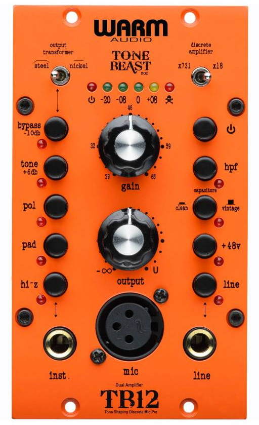 WARM AUDIO TB12-500 - профессиональный одноканальный микрофонный предусилительный модуль “Tone Beast” 500 серии. Имеет дискретные схемы обработки сигнала и трансформаторы CineMag высочайшего качества. Предназначенный для профессиональных и домашних студий и имеющий превосходные характеристики, этот прибор способен обрабатывать звуковой сигнал или микс таким образом, что он становится очень приятным для слуха.