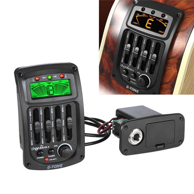 Звукосниматель для акустической гитары, врезной, 4-х полосный, с инверсией фазы и тюнером, эквалайзер