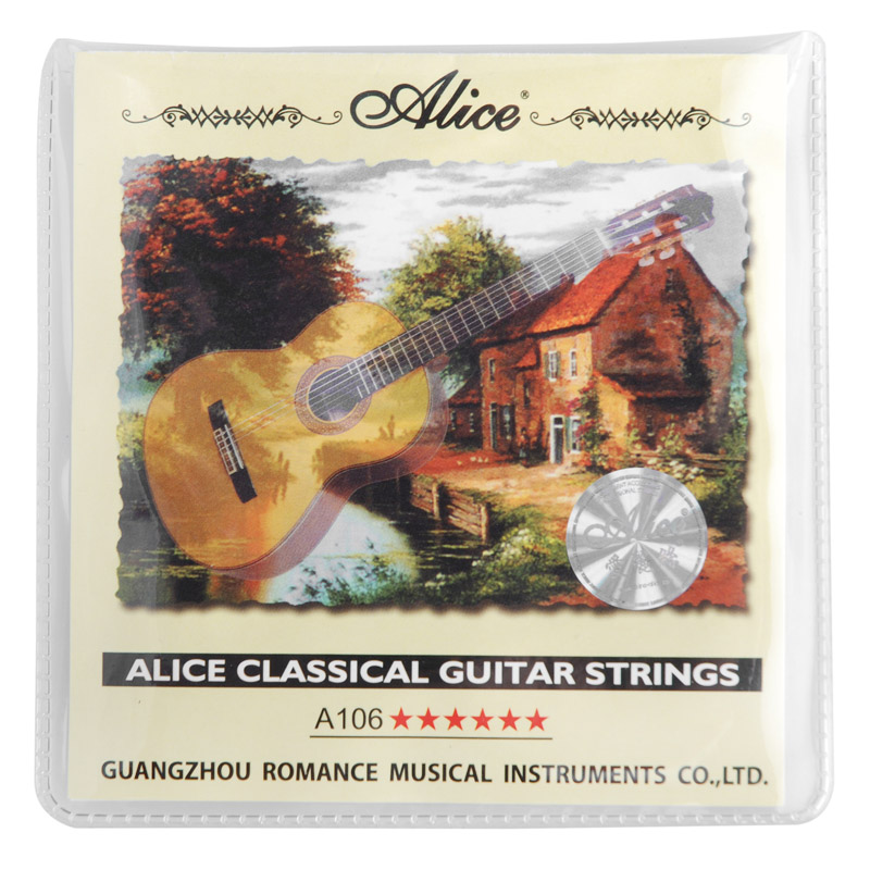 A106-H Струны для классической гитары, чистый нейлон - посеребренная медь, сильное натяжение, диаметры (дюйм/мм): .028 .032 .040 .030 .036 .044 / 0.71 0.81 1.02 0.76 0.91 1.12 Упаковка - пластиковый пакет. [20] Alice