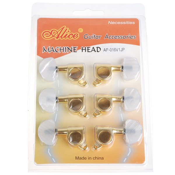 Комплект одиночных колков "гровер" вертикальной установки (для акустической гитары) золотых с позолоченной ручкой, закрытого типа, литой корпус.