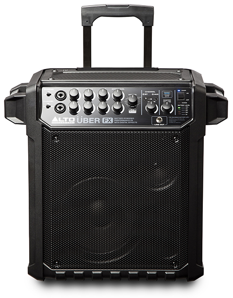 Uber FX – это портативная беспроводная акустическая система с модулем Bluetooth, процессором эффектов и эквалайзером. Кроме того, корпус системы оснащен встроенной телескопической ручкой и колесиками для транспортировки.
