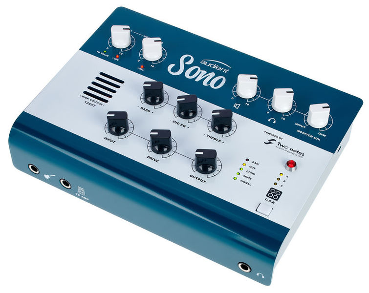 Audient Sono это специально разработанный аудиоинтерфейс для гитаристов. Позволяет записывать и обрабатывать гитарные треки с исключительно качественным и теплым ламповым звучанием, на борту данного аудионитерфейса имеется лампа предусиления 12ax7, 3-полосный эквалайзер и ПО от компании Two Notes симулятор кабинетов и усилителей что позволит Вам выжать максимум из своей гитары не имея дополнительного оборудования и специального помещения.