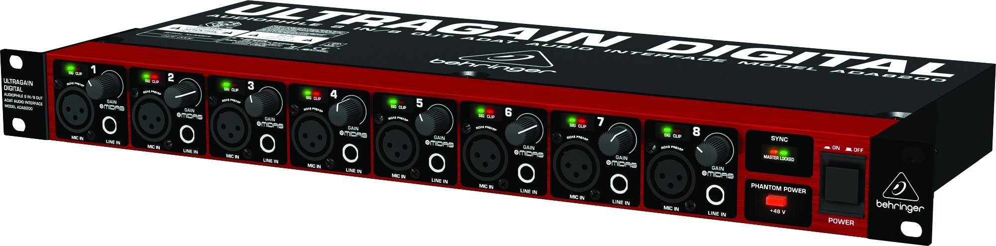 Behringer ADA8200 - Пройденный цикл исследований и разработок позволил создать продукт, который значительно улучшит Ваш рабочий процесс и сделает звук лучше, чем когда-либо. Возможно Вам нужно больше входов для записи будущего проекта? Восемь дополнительных MIDAS микрофонных предусилителей сделают Ваш источник звука абсолютно лучше. Возможно Вам нравится отправлять множество каналов цифрового аудио из компьютера в мониторы? Подключите выходные сигналы аудио интерфейса в ADA8200 через ADAT, потом в звукоусилительные каналы через XLR на задней панели, и цифровое-аналоговое/аналоговое-цифровое преобразование произойдет точно и мгновенно, благодаря Cirrus Logic 24-Bit конвертору.