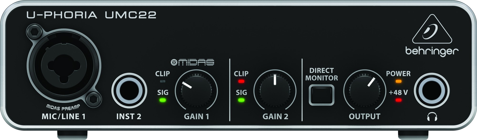 Знаменитая цифровыми пультами компания MIDAS разработала мирового класса предусилители для интерфейсов UMC204, UMC202 и UMC22 и благодаря 48В фантомному питанию, Вы можете использовать профессионального класса студийные конденсаторные микрофоны для создания выдающихся треков.