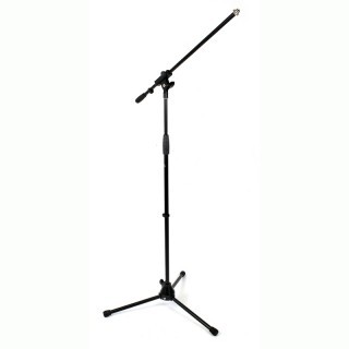 Стойка микрофонная "журавль", облегченная, черная, пластиковое основание ножек, пластиковый поворотный узел, фиксация через пластиковые втулки, держатель микрофона в комплекте