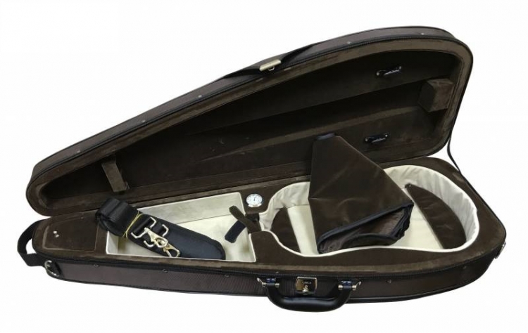 Чехол в форме трапеции BRAHNER VС-2018/BN 4/4 легкий и обеспечивает прекрасную защиту для полноразмерной скрипки. Он имеет плотный внешний материал и плюшевую подкладку с ограничителем по форме корпуса скрипки. Также внутри есть отделение с крышкой для мелких аксессуаров, два держателя смычка и гидрометр, с помощью которого вы сможете дополнительно следить за условиями хранения. С внешней стороны доступен карман, пластиковая ручка чемоданного типа и еще одна сбоку мягкая, плюс металлические петли для крепления входящего в комплект плечевого ремня.