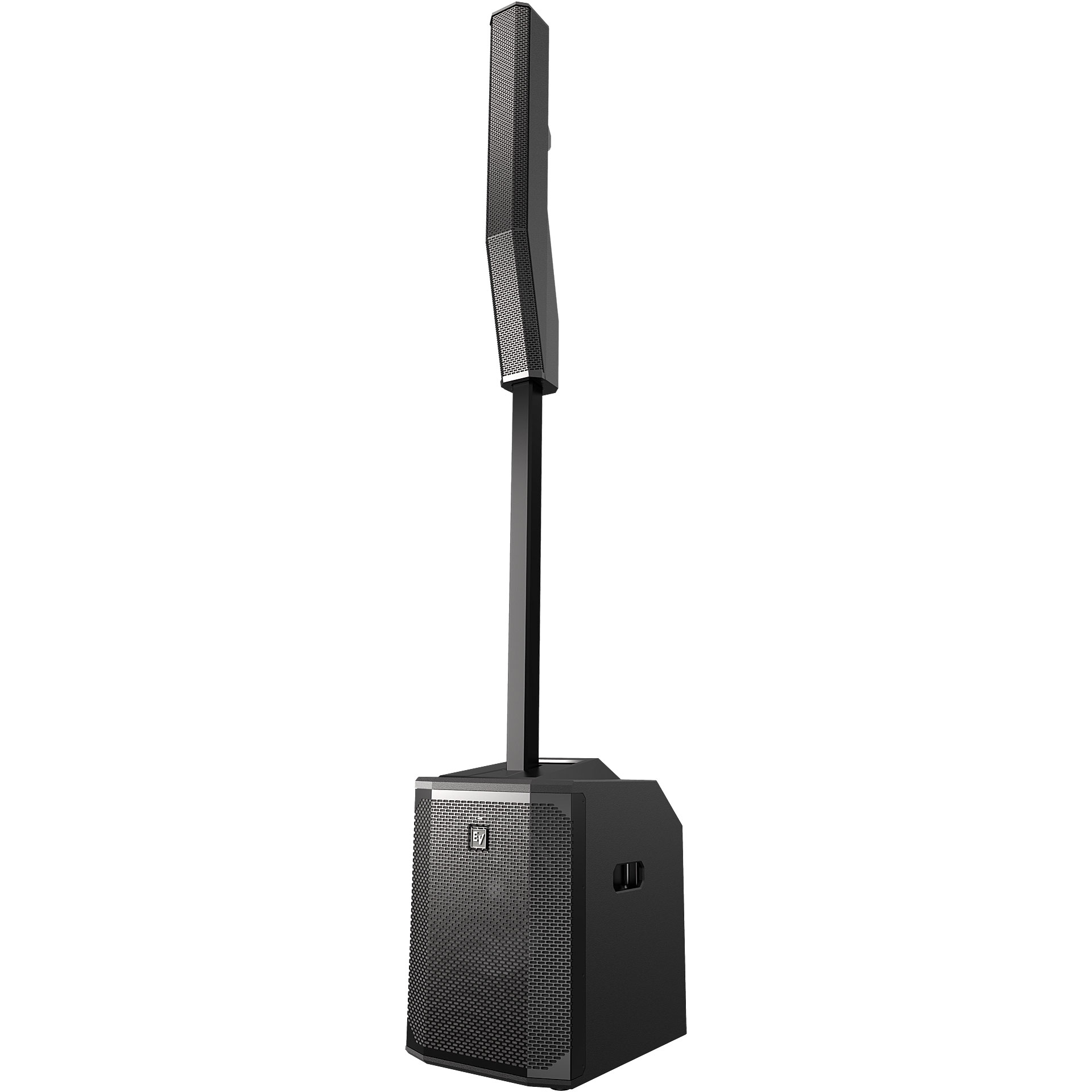 Electro-Voice Evolve 50 - компактная система звукоусиления, включающая сабвуфер (активный), сателлит и стойку для его установки. Сабвуфер оборудован 12-дюймовым динамиком (диапазон от 37 Гц) и 2-полосным усилителем, функционирующим в классе D и выдающим 1000 Вт выходной мощности. Что касается сателлита, то его конфигурация включает восемь 3,5-дюймовых динамиков с неодимовыми магнитами. Каждый излучатель располагает специальным волноводам, благодаря которым угол горизонтальной дисперсии достигает 120 градусов. А узкий угол (40 градусов) вертикальной дисперсии с асимметричной направленностью (наклон вниз) обеспечивает оптимальный охват на уровне стоящих и сидящих людей.