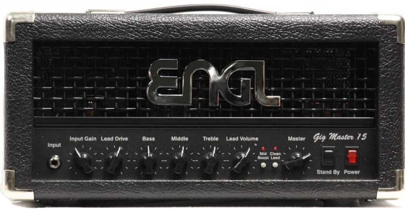 ENGL E315 GIG MASTER 15 - Ламповый усилитель 'голова'. 3 лампы (1 x ECC83, 2 x EL84). Выходная мощность: 15 Вт. Передняя панель: 2 канала Clean и Lead, 2 ручки регулировки усиления (Gain): Input Gain и Lead Drive. Лампа ECC83 (12AX7) воспроизводит очень тёплые и мягкие тона в предусилительной части и обеспечивает отличный искажённый звук с богатым сустейном. Эквалайзер: Bass, Middle, Treble для точной настройки звука; Дополнительно: Mid Boost , Gain Boost, переключаемые на лицевой панели или через педаль (footswitch). Переключение каналов с помощью лицевой панели или с помощью педали; регуляторы уровня звука: Lead Volume, Master Volume; переключатель Stand By; Задняя панель: 1 x 1/4' (Jack 6,35 мм) стерео-разъём для педали Z-4: переключение канала и Mid Boost; петля эффектов FX Loop: Send-Return; Линейный выход: балансный и скомпенсированный по частоте, имитация кабинета; Усилительные выходы: 8 Ом и 1 х 16 Ом для различных вариантов динамиков. Архитектура Power Soak, включающая 4 варианта настроек: полную мощность, 5 Вт, 1 Вт, нулевую мощность;Комбо (Combo Amp): динамик 10 'Celestion, типа G10N-40. Габариты (В x Ш x Г, см): 42 x 23x21,5. Вес: 8 кг.