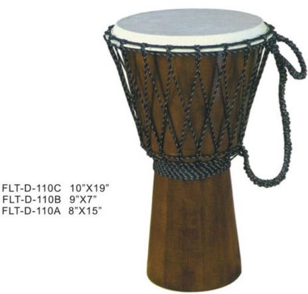 Джембе деревянный прямой конус 8`х15` веревочный бандаж хромированная стяжка кожи темный натуральный цвет
