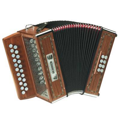 Диатонический аккордеон Hohner. Цвет: натуральный, Клавиатура: C/G, Правая клавиатура: Кнопки: 21 (2 ряд), Октавный диапазон: 42диатонических нот, Язычков,звучащих при взятии ноты: 2, Аккомпанемент Басовые кнопки: 8, Язычков,звучащих при взятии ноты: 5, Регистры: -, Габариты: 28,5x15,5, Вес, в кг: 3,3, чехол и ремни в комплекте.