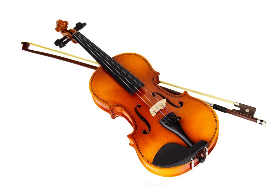 Скрипка (КОМПЛЕКТ - кейс + смычок) верхняя дека – ель,нижняя дека и обечайка – клен, гриф – клен, накладка на грифе – черные, колки и подбородник – черные, струнодержатель – метал. с 4-мя машинками, подставка– клен, покрытие - лак.