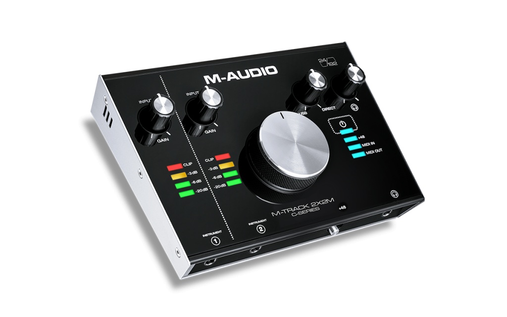 Сама популярная бюджетная звуковая карта, которая за последние 10 лет, обновлялась 5 раз. Приобретала новый дизайн, новые названия и каждый раз карта была одобрена пользователями. Самые главные составляющие успеха звуковой карты M-Track функциональность, качество звука, стабильность работы и конечно же низкая цена. Для домашней или полупрофессиональной студии звукозаписи M-Track подходит как нельзя лучше. Если смотреть на модель M-Audio Mtrack 2x2m то здесь есть всё что может понадобиться при записи или создании нового трека в домашних или студийных условиях. Для записи вокала или инструментальных партий в звуковой карте имеются 2 входа микрофонных/инструментальных с фантомным питанием для конденсаторных микрофонов, это значит, что вы можете записывать звук, используя абсолютно все типы микрофонов. Звуковая карта M-Track 2x2m оснащена MIDI входом и выходом это в принципе и есть отличие от той же модели без буквы M в конце названия. Подключается аудио-интерфейс с помощью USB и питание подаётся так же через USB.