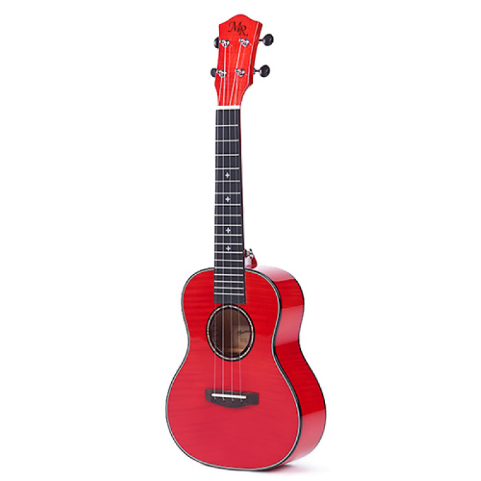 Укулеле концертная (гавайская гитара), цвет - КРАСНЫЙ , ЧЕХОЛ, 4 струны, верхняя, нижняя дека и обечайка – волнистый клён, гриф - клен, накладка на гриф – палисандр, отделка – глянцевый лак