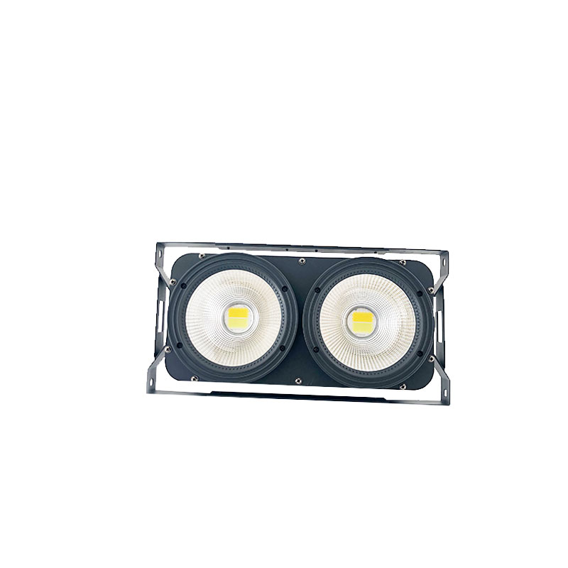 MVT BL2100 - Ультра яркий 1x2 блайндер с двумя COB светодиодами 2в1 (белый и теплый белый) мощностью по 100 Ватт, каждый из которых управляется индивидуально (функция pixel mapping control), в аллюминиевом корпусе. Светильник имеет широкий угол — 75°, а среди эффектов доступны импульсные, мгновенное открытие и плавное диммирование, а также строб. Для контроля устройством доступны 2 режима DMX: 4, 8 каналов. Режимы управления: DMX512, звуковая активация, мастер-ведомый, авто. Цветовая темература: 3200~6500K. В комплекте струбцина для крепления прибора к перекладине или ферме и страховочный тросик. Версия для использования только внутри помещения.