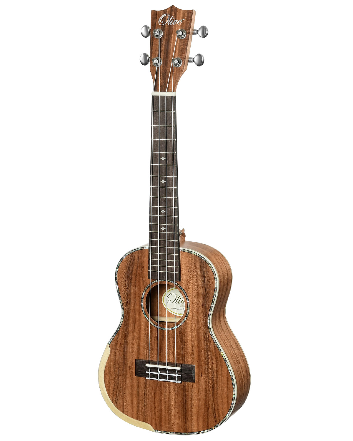 Укулеле концертная (гавайская гитара), фирменный утеплённый ЧЕХОЛ, верхняя. нижняя декаи обечайка – коа , гриф - окуме, накладка на гриф и струнодержатель - орех, розетка - инкрустация, колки - хром, закрытый механизм, отделка : кант инкрустация + КЛЁН. матовый лак