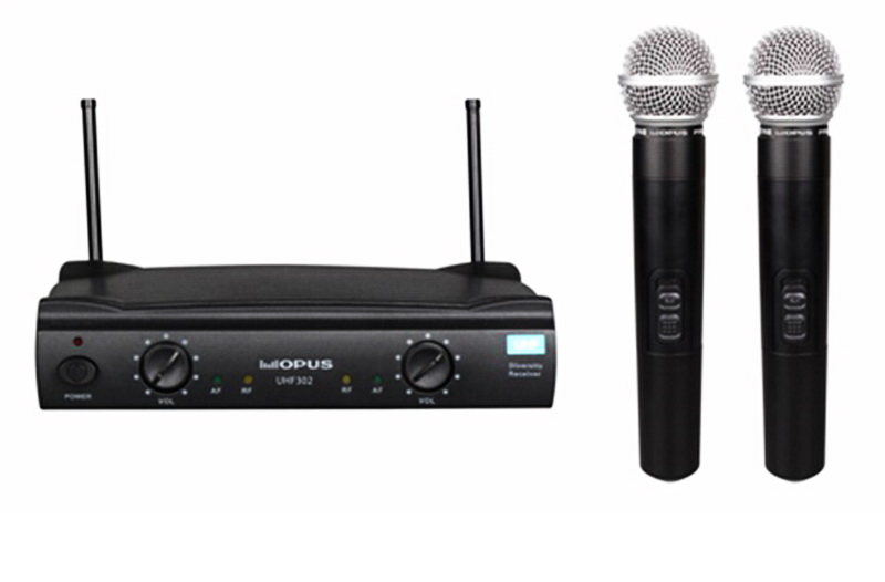 OPUS UHF-302HH - вокальная радиосистема с двумя ручными микрофонами с диапазоном частот 730-840/470~490 MHz и дальностью приема до 60 метров.