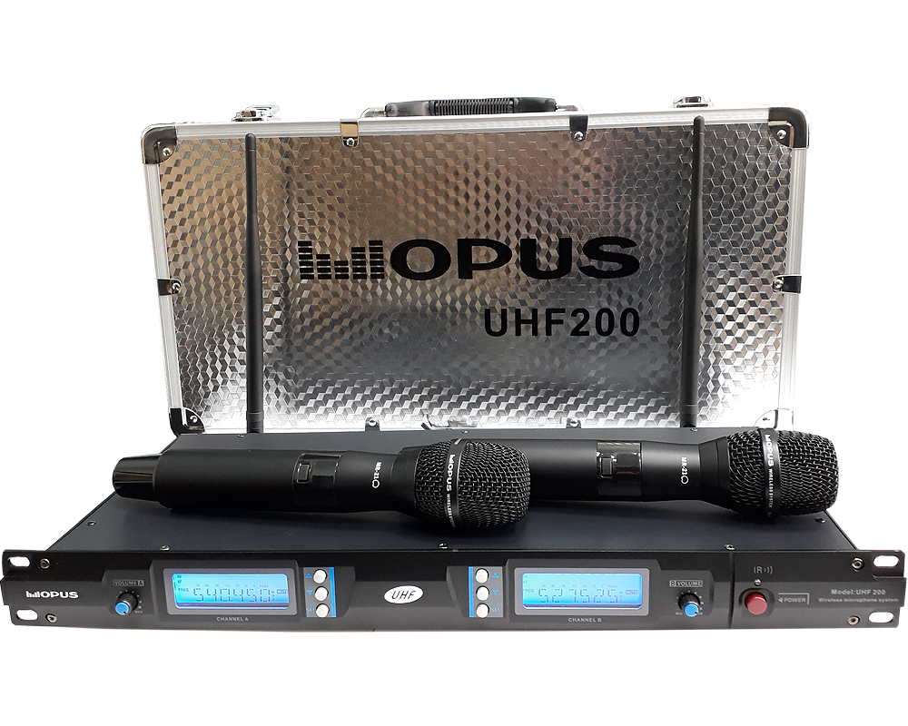 OPUS UHF KTV-200HH - 200-канальная (2 100) профессиональная вокальная радиосистема с головными микрофонами. В комплект входит стационарный приемник в рэковом исполнении, 2 поясных портативных передатчика, 2 микрофона с оголовьем и транспортировочный кейс. Автоматический поиск свободных каналов, связь между приемником и передатчиками через ИК-порт. Оптимальное решение для использования в концертной деятельности, проведения шоу-программ и презентаций, воспроизведения вокала профессионального уровня в караоке заведениях.
