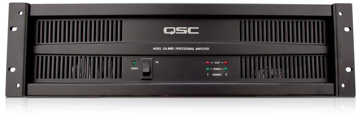 QSC ISA800Ti – это двухканальный коммерческий усилитель мощности класса H из серии ISA от компании QSC (высота – 3U). Он обеспечивает высокий уровень звука для профессиональных АС и может быть использован для озвучивания больших помещений, а также в постоянных и временных инсталляциях. Как правило, рекомендуется использовать усилитель с необходимой программной выходной мощностью или удвоенной номинальной RMS. Подгруппа с индексом Ti означает, что усилитель может работать с низкоимпедансными каналами и обладает изолированными линейными выходами с напряжением 25/70/100 Вольт для распределенных аудиосистем.