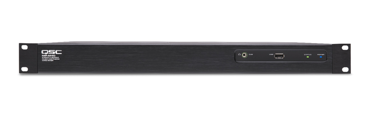 QSC MP-M40 способен предложить большое количество удобных и эффективных возможностей для воспроизведения фоновой музыки и голосовых сообщений, маршрутизации аудиосигнала, разделения его на зоны, коррекции частотной характеристики, а также оптимизации звучания под различные условия. Устройство отличается крайне простым и интуитивно понятным управлением, которое реализуется с помощью соответствующего софта, позволяющего легко и быстро настроить практически любые параметры. Корпус микшерного пульта представляет собой прочную рэковую конструкцию высотой 1U, на лицевой панели которой располагаются индикаторы статуса работы и наличия перегрузки. Питание осуществляется от сети.