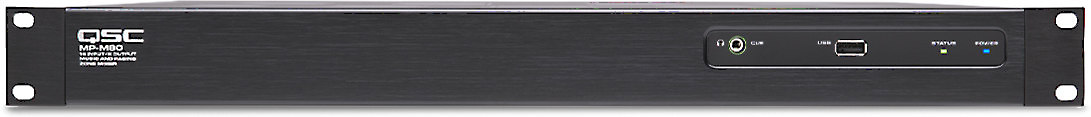 QSC MP-M80 представляет собой профессиональный микшерный пульт, обладающий современным и удобным интерфейсом, а также предлагающий большое количество функций для гибкой настройки аудиосигнала, разделения на зоны, коррекции звучания, а также оптимизации всей системы под различные инсталляции. Редактировать параметры прибора позволяется как в режиме реального времени, так и заблаговременно. Корпус выполнен в рэковом стандарте 1U, а на лицевой панели имеются светодиоды, отображающие статус работы и наличие клиппинга. Энергообеспечение происходит от сети.