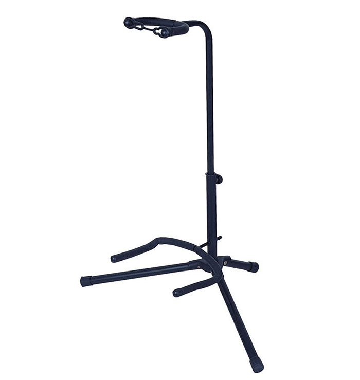 Cтойка для одной гитары.Стойка регулируется под различные размеры гитары, специальные мягкие резиновые покрытия и ремешок защищают инструмент.Подходит для классической, акустической и электро бас-гитары.