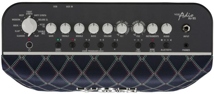VOX ADIO-AIR-BS - компактный и лёгкий современный моделирующий усилитель, выдающий впечатляющую для своего размера мощность 50 Ватт с двумя 3-дюймовыми динамиками. Громкий и мощный выходной сигнал этого усилителя превосходит все аналогичные модели в своём классе. Эта модель прекрасно подойдет как для самостоятельных занятий, так и для выступлений. Adio Air BS может моделировать 11 различных усилителей, или 17 с использованием программного обеспечения Tone Room. Предусмотрено два набора эффектов, по 4 эффекта в каждом (или 11 и 8 соответственно с применением Tone Room). Можно использовать до 8 пользовательских настроек - два банка по 4. Дополнительно имеются отключаемые эффекты: Wide Stereo, четырёхступенчатый подавитель шума, а также эквалайзер. Возможности коммутации предусматривают инструментальный вход (джек), вход AUX (джек), разъем для подключения наушников и USB порт. Кроме того, есть возможность беспроводного соединения по Bluetooth, в том числе поддерживается Bluetooth MIDI. Adio Air BS может работать полностью автономно от 8 батарей АА. В комплекте поставляется адаптер переменного тока и кабель для подключения к электросети, а также карта для загрузки ПО JamVOX III. Вес модели – 2,9 кг.