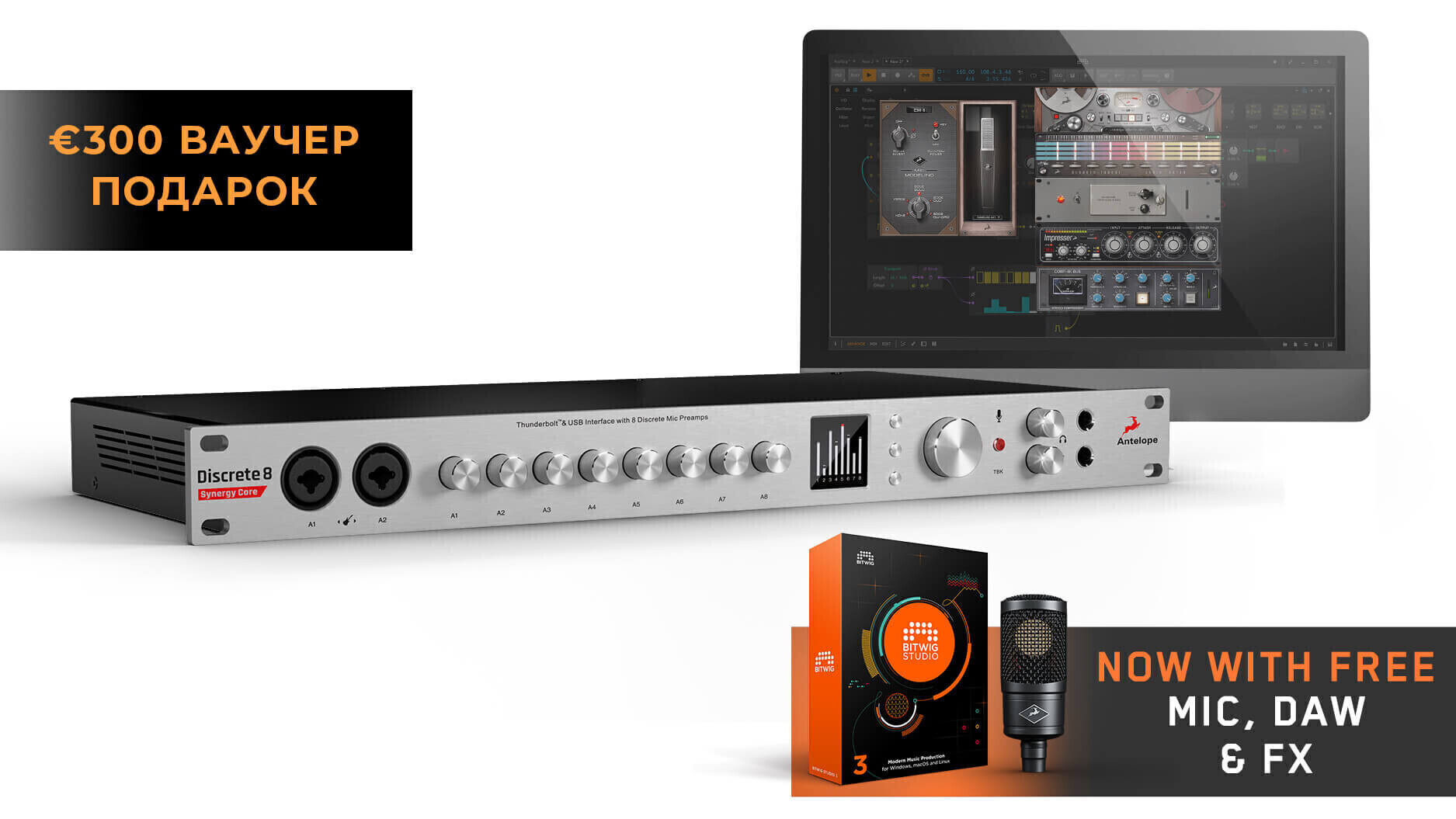 Данный товар Antelope Audio Discrete 8 Synergy Core стоит 130 970 руб.Вы можете осуществить обмен в течение 14 дней, если Вас не устроило качество товара. Товар для обмена необходимо предоставлять полностью в товарном виде (включая комплектацию, стикеры, товарную упаковку). Кроме товаров не подлежащих возврату*Мы выбираем только лучшие транспортные компании, плюс к этому наши работники склада, тщательно упаковывают каждую посылку. Так же, Вы можете проверить посылку при получении и убедиться что с Вашим заказом всё хорошо!Похожие товары