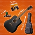 Новогодний комплект: акустическая гитара, утепленный чехол, тюнер для настройки гитары, качественные струны D'Addario (калибр на выбор 9-10-11)