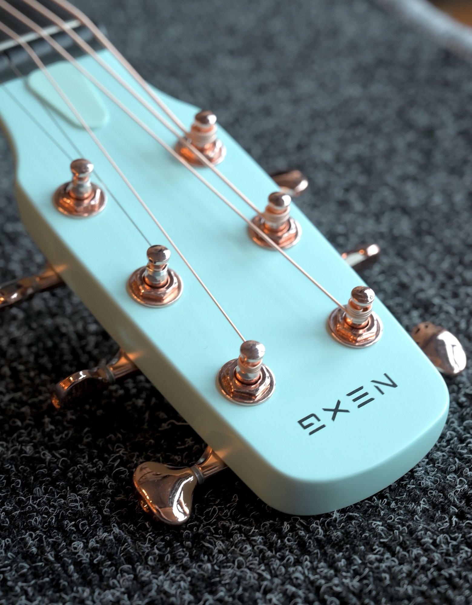 Enya NEXG 2/BL в матовой голубой отделке имеет компактный корпус высотой 38 дюймов (96,5 см). Обечайка и задняя дека выполнены из прочного карбона, стойкого к перепаду влажности и температур. Накладка на гриф из карбона оснащена укороченной мензурой 23,75 дюймов и 20 ладами без маркеров.