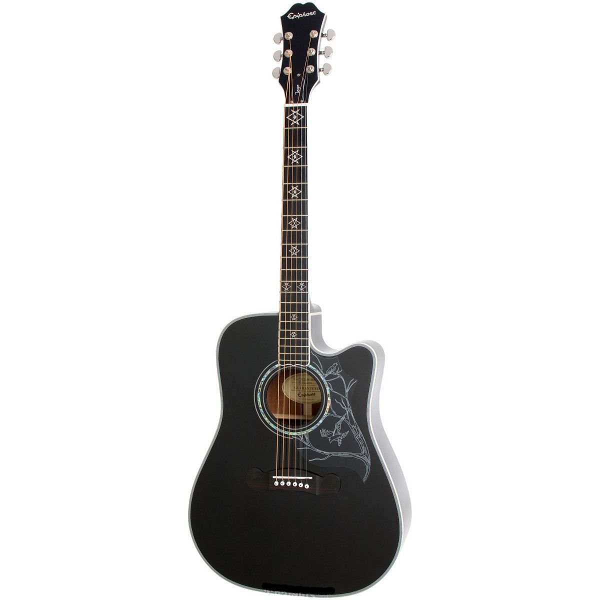 EPIPHONE Dave Navarro 'Jane' Ebony - шестиструнная электроакустическая гитара, прекрасно подходящая для альтернативного рока, тяжелого металла, психоделики и современного рока в целом. Подписная модель Дэйва Наварро (Red Hot Chili Peppers, Jane’s Addiction), разработанная Epiphone в сотрудничестве с этим знаменитым гитаристом. Глубокое насыщенные звучание достигается в том числе благодаря использованию в конструкции массива ситхинской ели (в верхней деке), цельной древесины красного дерева (нижняя дека) и отборного красного дерева (обечайка).