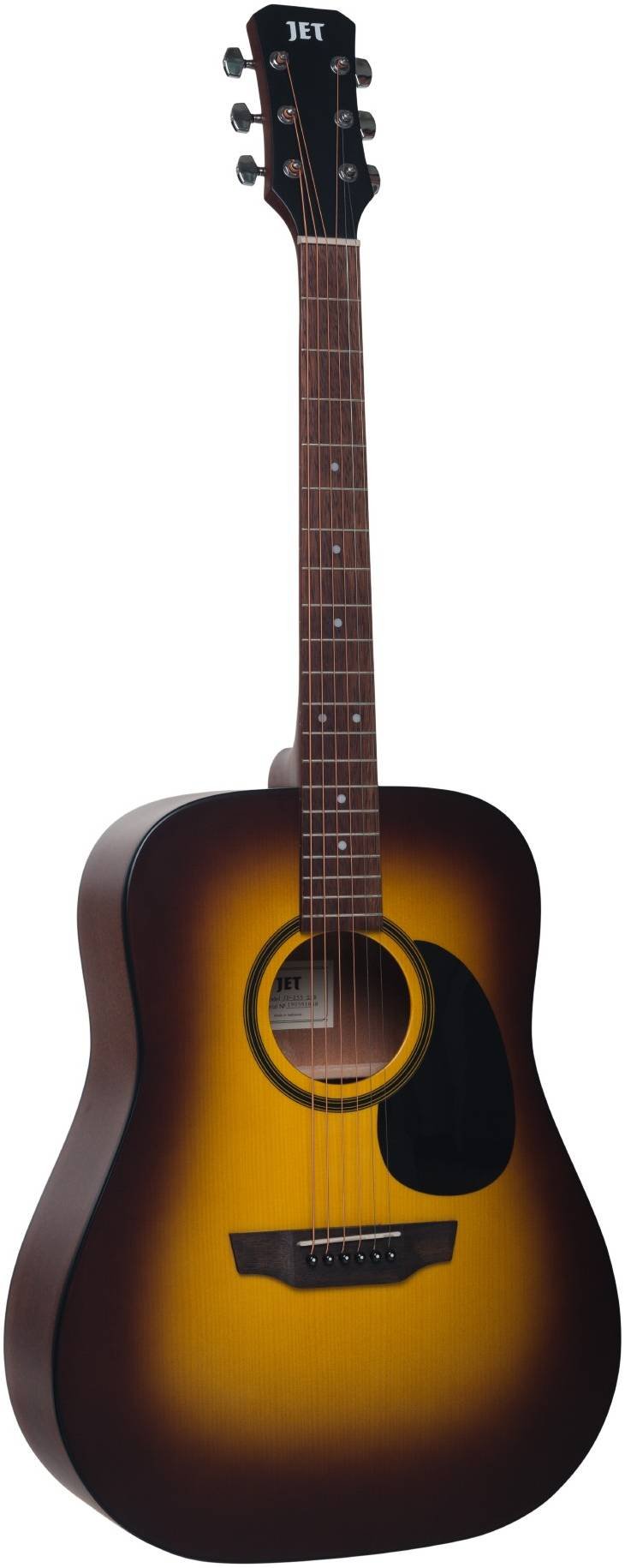 Говоря о конструкции акустических гитар JET особо надо отметить накладку грифа, которую делают из древесины Мербау. Древесина Мербау оказалась намного прочнее и долговечнее. А ее удельная плотность способствует качественному звукоизвлечению.