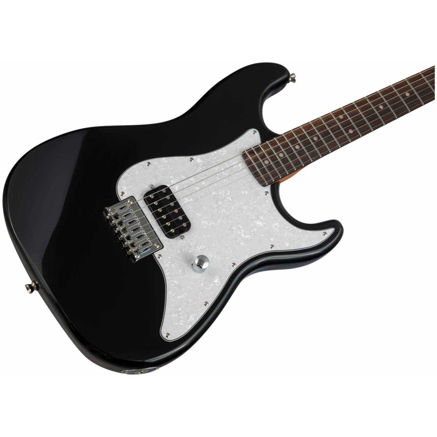 Накладка на гриф выполнена из палисандра, фурнитура хром, фиксированное тремоло, 1 хамбакер черного цвета, перламутровая накладка и металлическая ручка управления – в JET JS-400 HT BK все продумано до мелочей.