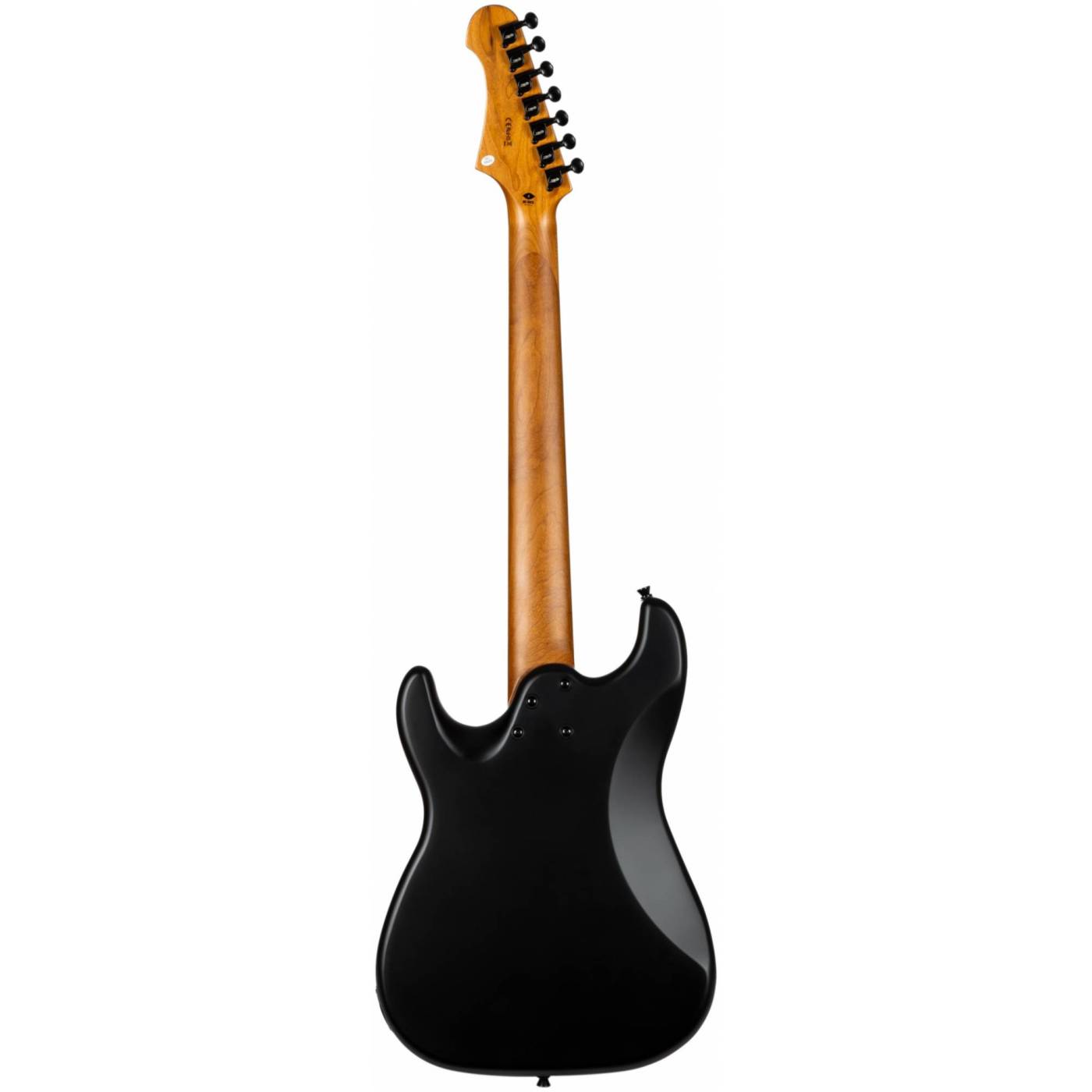 JET JS-407 MBK R - это 7миструнный инструмент с палисандровой накладкой на гриф и 2мя хамбакерами без крышек, гитара выполнена в черном матовом цвете.