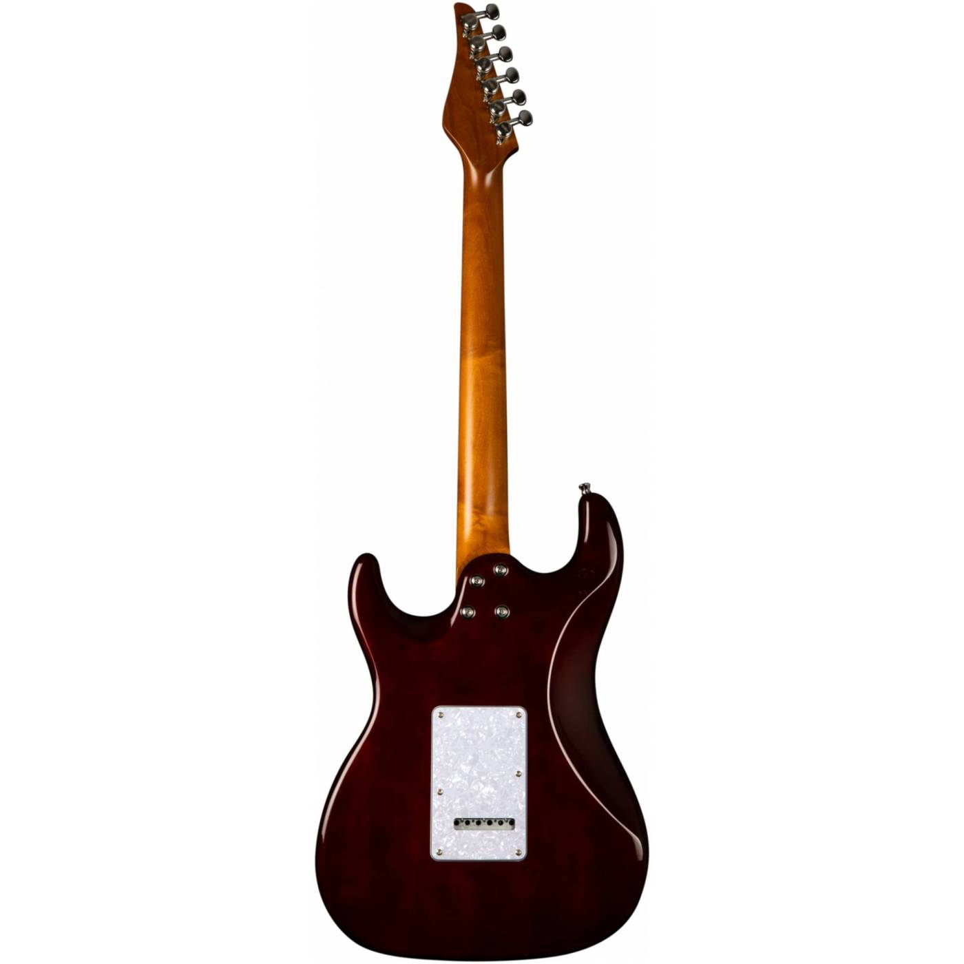 Гриф выполнен из печеного клена (roasted maple). При такой обработке поры дерева максимально сжимаются и в процессе использования вода уже не будет выходить, гриф стабилен, вне зависимости от влажности и смены температуры. Плюс такое дерево выглядит очень красиво. Накладка же на гриф выполнена из палисандра.