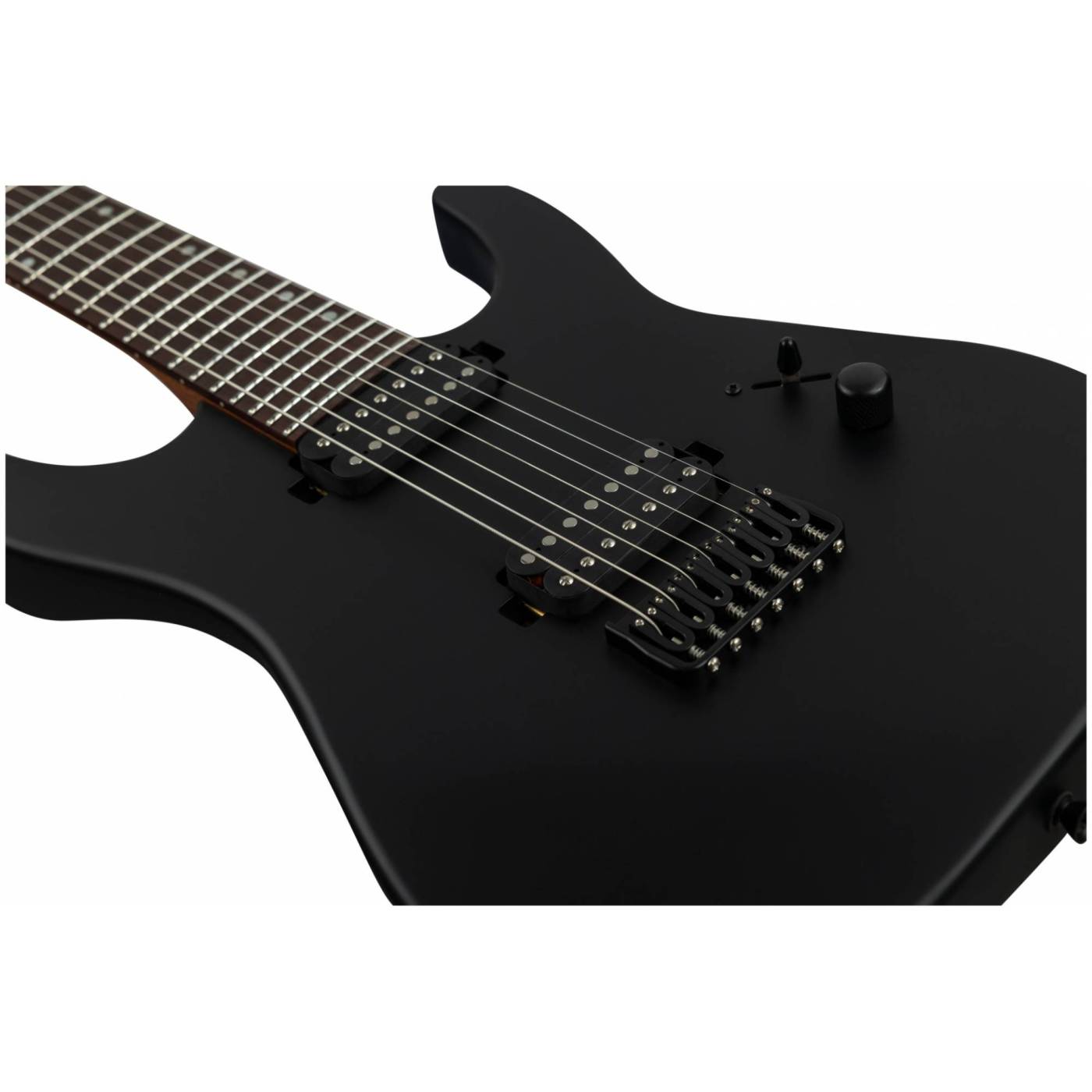 JET JS-507 BK – 7ми струнный инструмент c двумя хамбакерами для тех, кто ищет более тяжелый, жесткий звук. Суперстрат из красного дерева с отделкой черного матового цвета с открытыми порами.