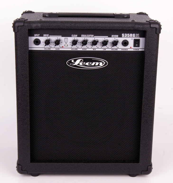 Комбик гитарный 25Вт c реверберацией LEEM. Мощность 25Вт, динамик 8", Передняя панель: 1 вход, регулировка усиления, громкости, громкости усиления, реверберации, 3-хполосный эквалайзер, выход на наушники, выключатель питания, Задняя панель: разъем подключения педали, выходы IN/OUT, размеры 353х340х200мм LEEM.