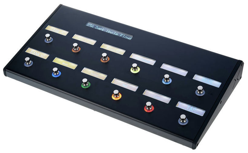- Двенадцать сенсорных ножных переключателей с многоцветной светодиодной подсветкой и отдельными настраиваемыми графическими дисплеями;