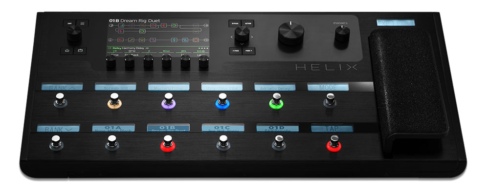 Helix оборудован двенадцатью сенсорными ножными переключателями с многоцветной LED индикацией и индивидуальными графическими дисплеями, а также большим цветным основной экраном. В сочетании с революционным режимом дистанционного редактирования это позволяет Helix устанавливать новый стандарт сочетания удобства пользования и функциональности! Прибавьте к этому профессиональные возможности MIDI контроллера и четыре(!) назначаемые петли эффектов и вы поймете, что этот монстр также является самым продвинутым и комплексным контроллером для гитарных систем, из когда-либо созданных человечеством!