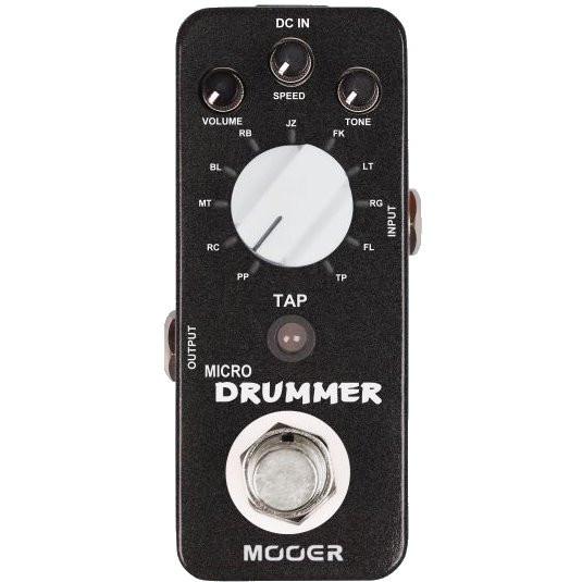 Micro drummer - это невероятно компактная драм машина, способная легко поместиться в ваш педалборд. Обширный арсенал из 121 ритмов, охватывает разнообразные музыкальные стили и может быть синхронизирован с нужным темпом при помощи функции tap tempo. Держите ритм вместе с MOOER micro DRUMMER!