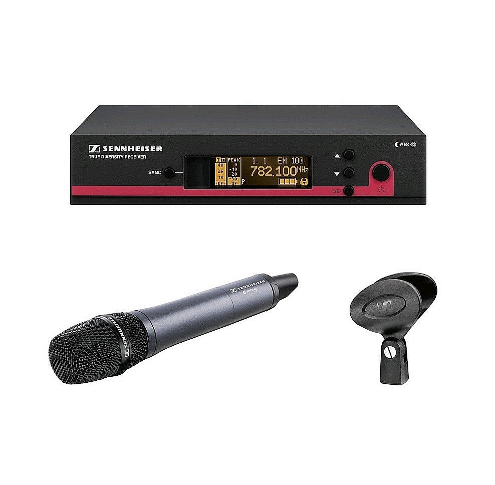 Радиосистема с ручным вокальным микрофоном Sennheiser EW 100-935 G3-B-X, диапазон радиочастот В (626-668 МГц). Комплект состоит из ручного микрофна-передатчика SKM 100-935 G3 и рекового приемника EM 100 G3. Все ручные передатчики серии ew 100 комплектуются микрофонными головками профессиональной серии е 900. Вокал, озвученный с помощью передатчика SKM 100-935 G3, легко «прорезается» в миксе даже при очень высоких уровнях громкости на сцене. Передатчик легко синхронизируется с приёмником через ИК-интерфейс простым нажатием кнопки. Приёмник с технологией True Diversity оборудован графическим дисплеем с задней подсветкой, информацию на котором легко прочитать при любом освещении.