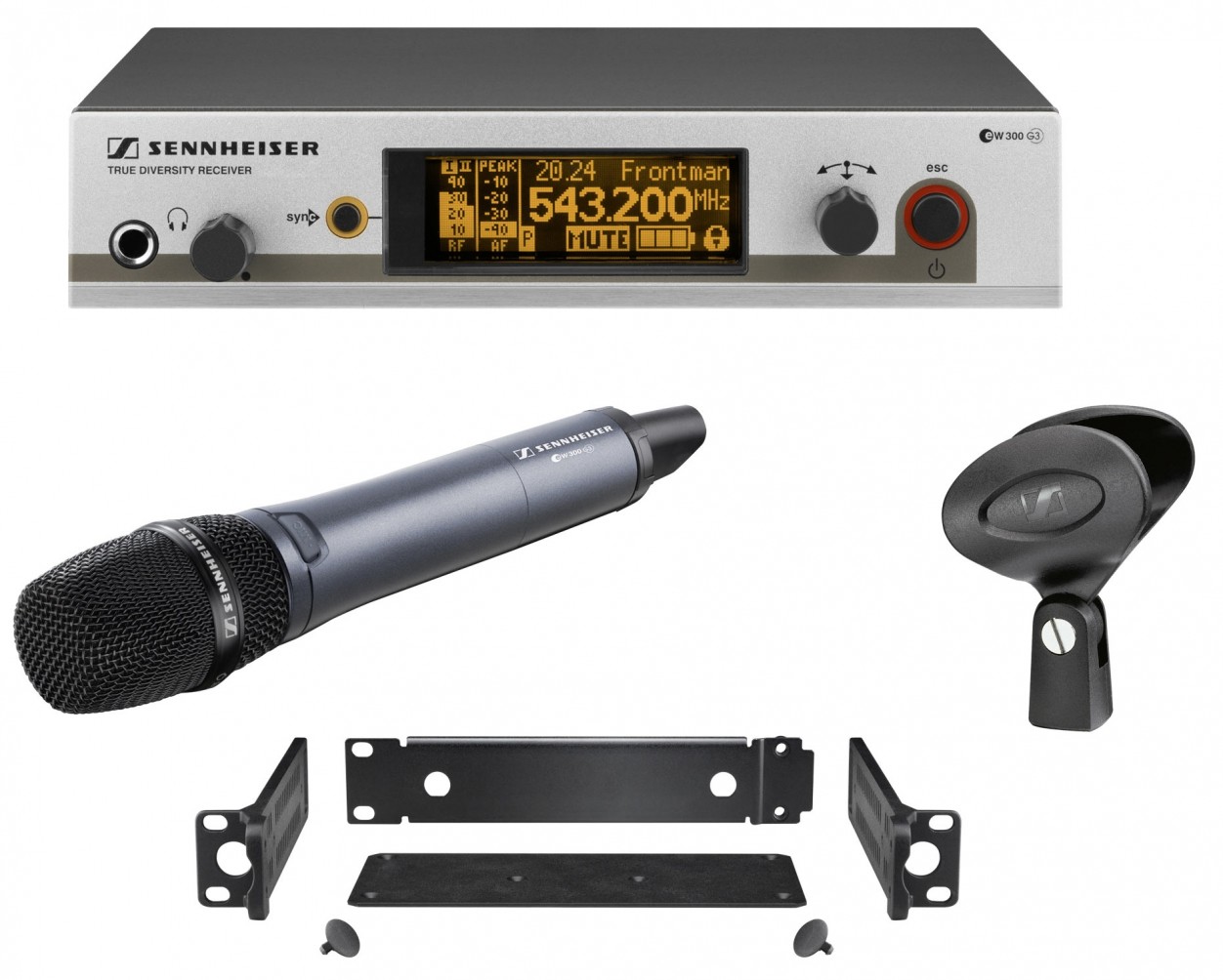 Универсальный комплект для озвучивания вокала и речи. Ручной передатчик с динамической кардиоидной микрофонной головкой обеспечивает профессиональное качество звука. Передатчик легко синхронизируется с приёмником через ИК-интерфейс простым нажатием кнопки. Приёмник EK 300 G3 с технологией True Diversity оборудован Ethernet – портом, через который можно осуществлять контроль и управление многоканальными системами с помощью программы Wireless Systems Manager. Всю информацию можно легко прочитать при любом освещении на большом графическом дисплее с задней подсветкой.