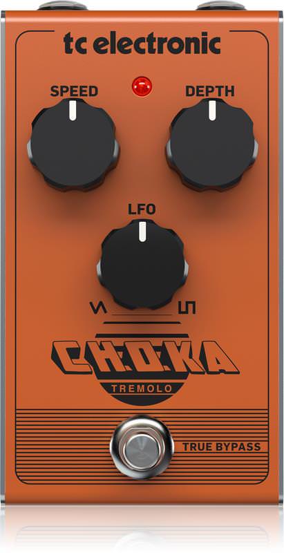 TC ELECTRONIC CHOKA TREMOLO - гибкая в настройках педаль эффекта тремоло в винтажном стиле. Тремоло – самый элегантный и простой в использовании эффект, который должен присутствовать в любом хорошем усилителе, однако, это не всегда так. CHOKA TREMOLO даёт мягкое, аккуратное вибрато нужной интенсивности, которое легко настраивается созданием волн любой формы. В конструкции используется улучшенная, полностью аналоговая схема. Управление просто и лаконично, осуществляется с помощью трех регуляторов: Speed (настраивает скорость модуляции), Depth (настраивает интенсивность эффекта) и LFO (тонкая настройка формы волны). Режим True Bypass гарантирует, что эффект не влияет на звук инструмента, когда не используется. В конструкции применены высококачественные материалы и электронные компоненты. Педаль неприхотлива и надежна, заключена в прочный цельнометаллический корпус «Built-like-a-tank» оранжевого цвета, способный выдержать не самое бережное обращение на концертах и в турах. Может быть установлена в педалборд. Электропитание – от батарейки «Крона» 9 вольт или сетевого адаптера PSU-SB (приобретается отдельно).