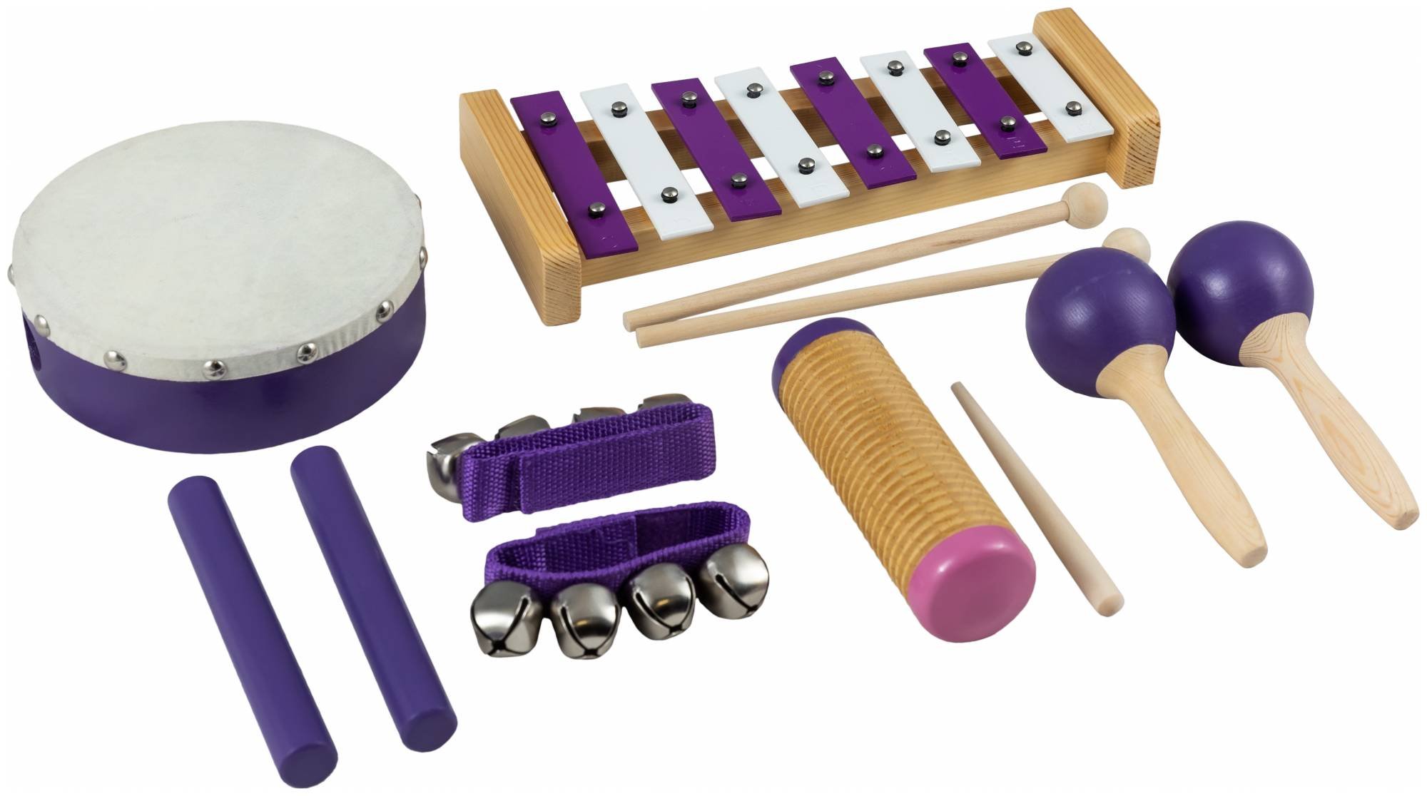 Перкуссионный набор – это набор ударных музыкальных инструментов, не являющихся классическими, как правило, это этнические ударные инструменты. Перкуссионный набор TERRIS PNS-06SC30 изготовлен из экологически чистых материалов и состоит из 6-ти предметов, оформленных в красочном стиле: пары цветных деревянных клавесов, круглого тамбурина с натуральной мембраной, металофона, браслетов...