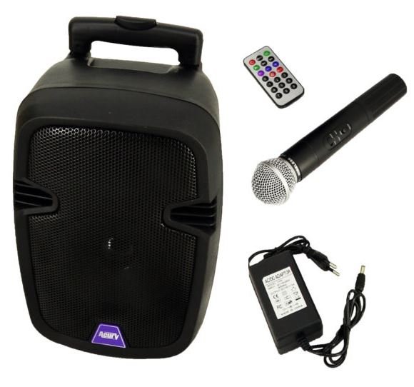 Мобильная акустическая система Acury AS-10T серия TRAVEL, с встроенным усилителем, аккумулятором и 1 беспроводным микрофоном в комплекте. Динамики: 10 " НЧ и 1" ВЧ. USB/MP3/FM/Bluetooth/microSD. Светодиодный LCD-экран, Входы: RCA AUX и микрофонный вход. MIC Приоритет,регулировка общая громкость, громкость микрофона, эффект Echo. Питание: встроенный аккумулятор (12V 2.8A), внешний вход 12В постоянного тока, питание от сети (DC15V 2A). Максимальная мощность: 150 Вт. Удобная регулируемая ручка для переноски(высота 920 мм) и колесики для быстрой транспортировки. Возможность установки на акустическую стойку. С одним беспроводным микрофоном. Можно подлючить беспроводную головную гарнитуру (приобретается отдельно)