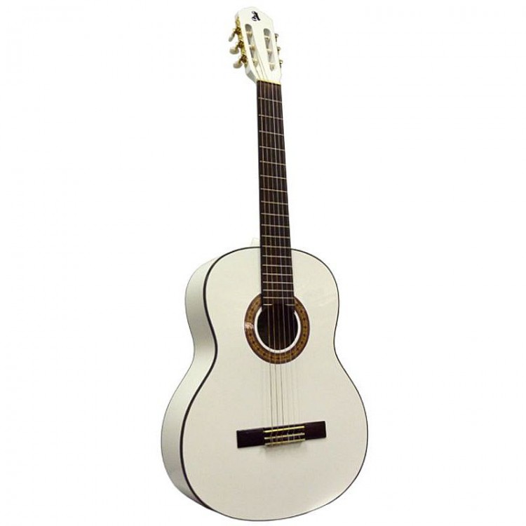 Alicante LAURA - 6-струнная полноразмерная классическая гитара. Верхняя дека из слоеной ели, корпус из слоеного розового дерева, гриф из красного дерева с накладкой из палисандра. Ширина верхнего порожка 52 мм, мензура 650 мм. Глянцевая отделка. Цвет белый.