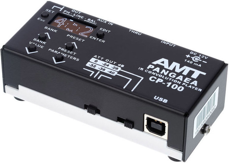 С помощью устройства AMT Pangaea CP-100 вы можете легко эмулировать звучание любого гитарного кабинета, загружая соответствующие импульсные отклики (IRs) гитарных кабинетов, которые можно легко найти в Интернете (как платные, так и бесплатные). В память устройства можно загрузить до 100 различных импульсных откликов гитарных кабинетов и по желанию выбирать нужный. При подключении устройства к PC не требуется, какого либо дополнительного программного обеспечения, устройство видится как USB накопитель PANGAEA_MINI. Кроме того вы можете редактировать звучание импульсного отклика с помощью регулятора громкости, пяти полосного эквалайзера и эффекта объема комнаты (FXROOM). При использовании AMT Pangaea CP-100 вы можете пропустить через нее сигнал (не нарушая его целостности), идущий с выхода гитарного лампового усилителя на гитарный кабинет, обработать его с помощью импульсного отклика выбранного вами гитарного кабинета и подать сигнал непосредственно на вход широкополосного усилителя, что позволяет вам избавится от хлопот связанных с установкой микрофонов у гитарного кабинета.