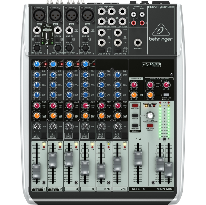 Модели микшеров серии XENYX Q характеризуются встроенной "беспроводной готовностью" для новой ULM серии USB микрофонов, что делает их первыми в индустрии. Вместе со встроенным USB/audio интерфейсом, компрессорами на всех моно каналах, эти микшеры доступны со всем записывающим и редактирующим программным обеспечением, что превратит Ваш компьютер в настоящую высокоэффективную записывающую студию.Компрессия "одна кнопка" доступна на всех моно каналах и легка в обращении даже для новичка. С ним можно легко набрать безупречное количество компрессии для инструментов и вокала. XENYX предусилители выражают 130 dB динамического диапазона с полосой пропускания от 10 Hz до 200 kHz. Канал эквалайзера основан на схеме British пультов 60-70х, позволяющий наполнять сигнал невероятной теплотой и детализировать музыкальный характер. Благодаря встроенному реверсивному стерео USB аудио интерфейсу, можно подключать Мас компьютер через отдельный USB кабель. Теперь любой источник можно подключить в микшер и записывать напрямую на хард диск. Q1204USB компактный микшер с 4 моно каналами, XENYX микрофонными предусилителями с фантомным питанием плюс компрессоры и 3-полосный "British" эквалайзер. А также 2 стерео канала, 2 Aux посыла, 2 стерео Aux возврата для использования со внешними FX модулями и USB разъем для РС или Мас компьютеров.