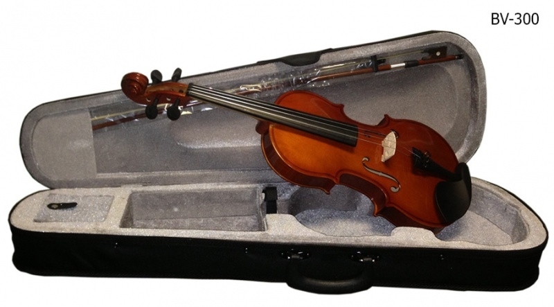 Скрипка размер 1/4 (КОМПЛЕКТ - кейс + смычок) верхняя дека – ель,нижняя дека и обечайка – клен, гриф – клен, накладка на грифе, колки и подбородник – черные, струнодержатель – метал. с 4-мя машинками, подставка– клен, покрытие - лак