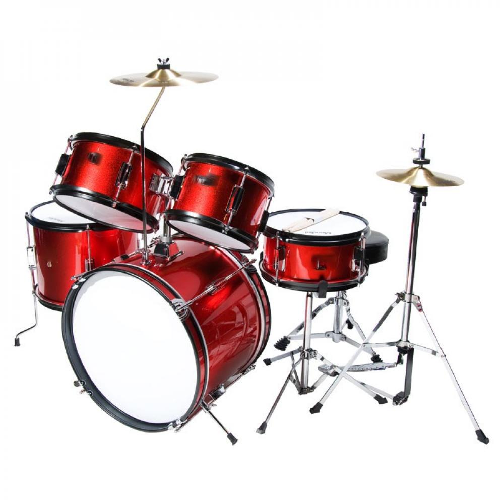 Ударная установка из 5-ти барабанов (цвет - черный) (бочка 16х22, томы 7x10, 8х12 напольный 15х16, малый 5,5х14) со стойкой для малого барабана, стойкой для хай-хэта, стойкой под тарелку, педалью для бас-бочки, комплектом тарелок (14" Hi-hat, 16" Crash)